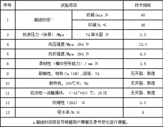 執(zhí)行國(guó)家建材行業(yè)標(biāo)準(zhǔn)《聚合物防水漿料》I型(通用型)物理力學(xué)性能